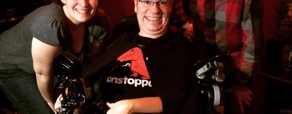 J’ai donc organisé une rencontre entre Alain et J-P. Je crois qu’ils se sont impressionnés mutuellement ! C’était tellement beau de voir Alain vivre l’expérience du casque360, Jean-Philippe l’aider à supporter le poids du casque et moi confirmer la direction pour qu’Alain n’accroche rien 😛 nous faisions une belle équipe !!! Ce soir là, Jean-Philippe a découvert un nouvel univers (la force des réseaux sociaux) et une des personnes les plus inspirantes que je connaisse.